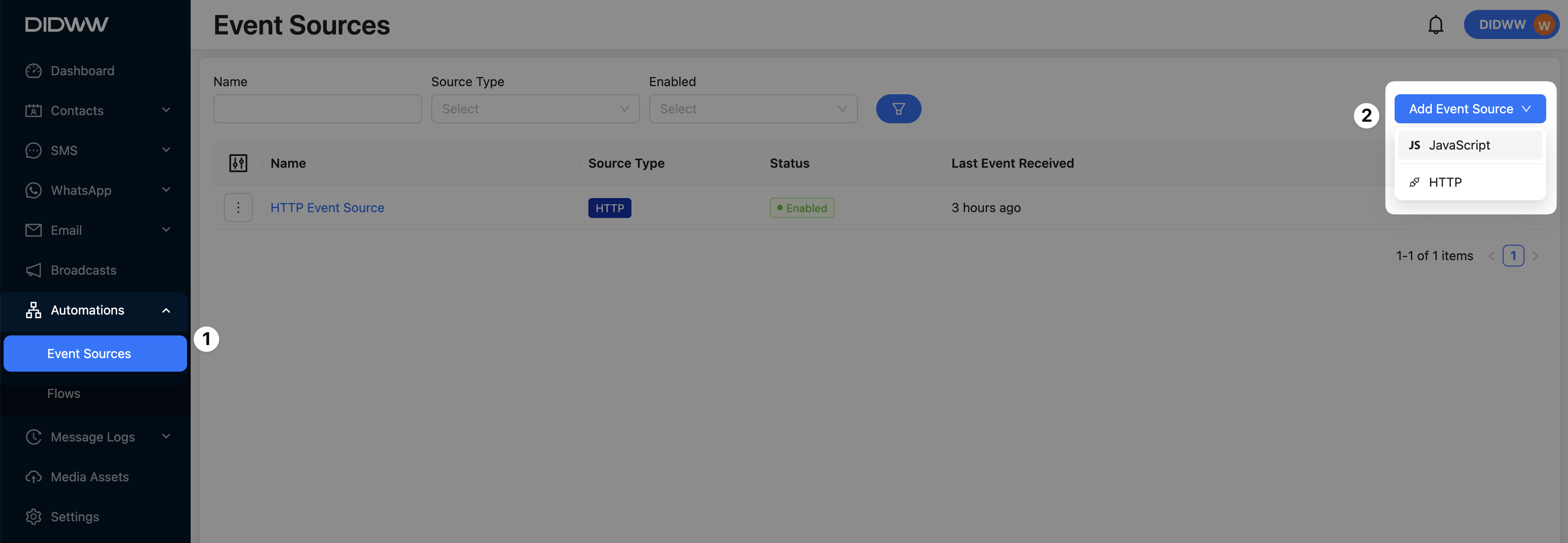 Go to Automations -> Event Sources.
