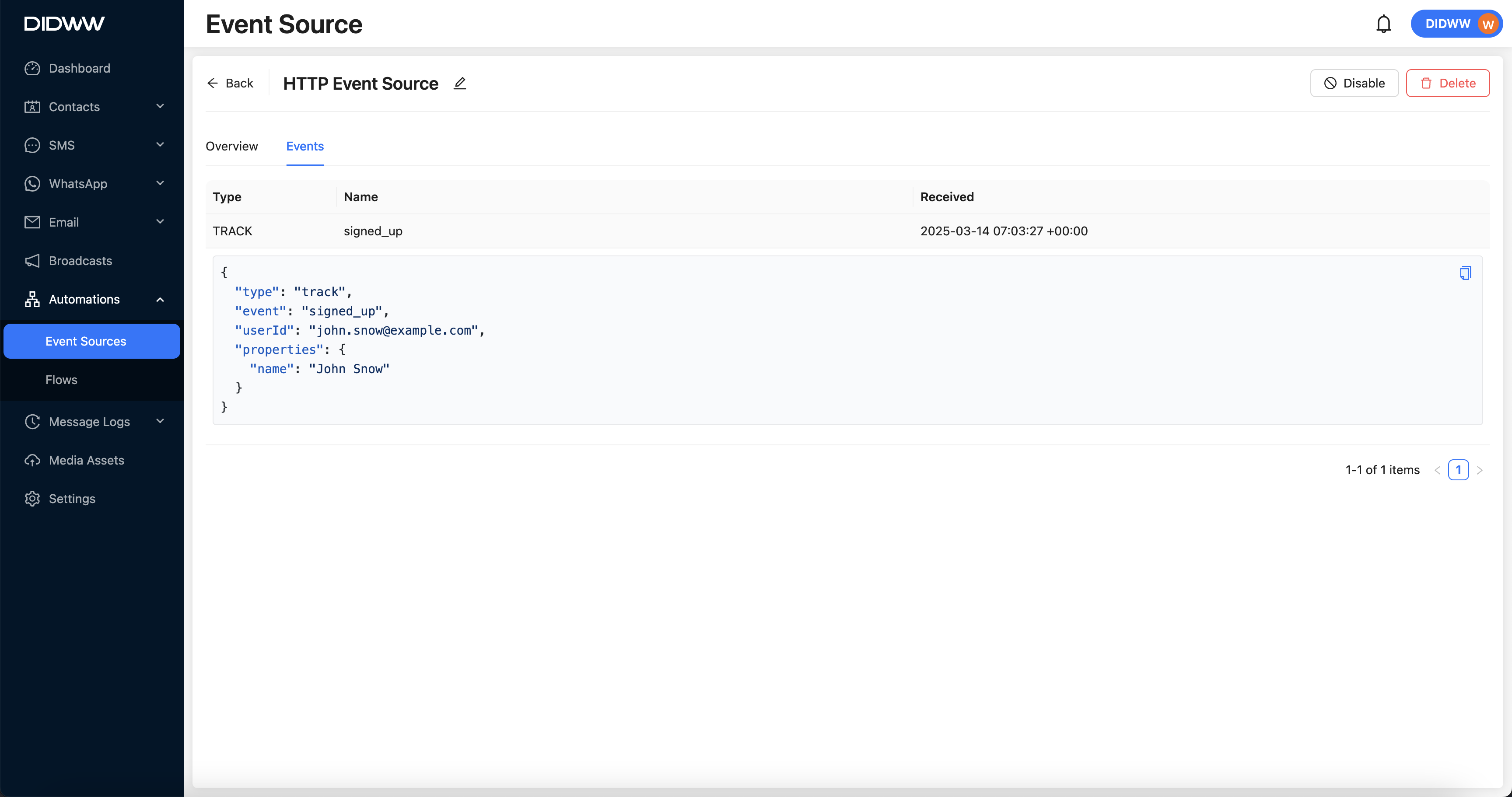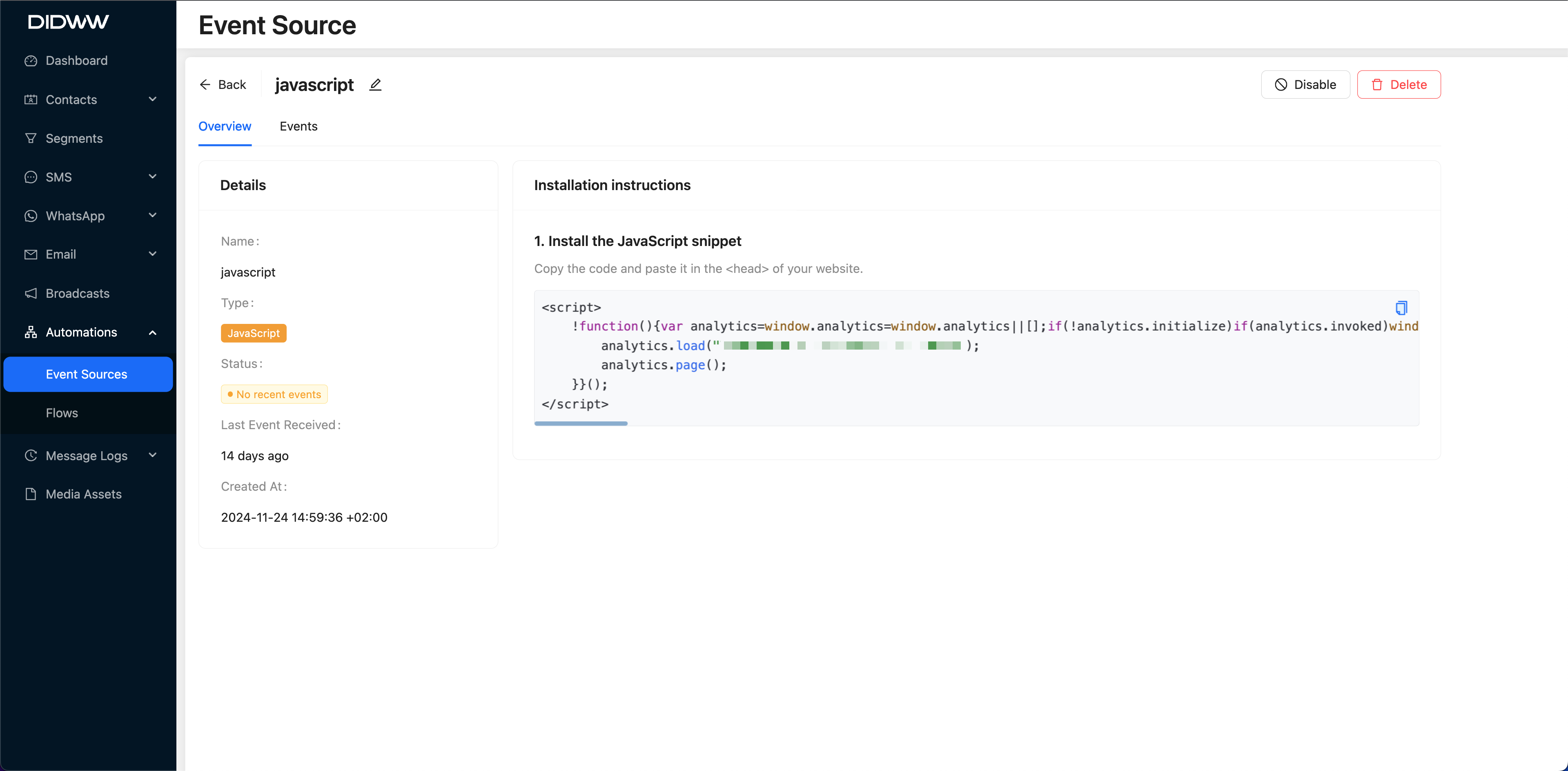 Go to Automations > Event Sources.