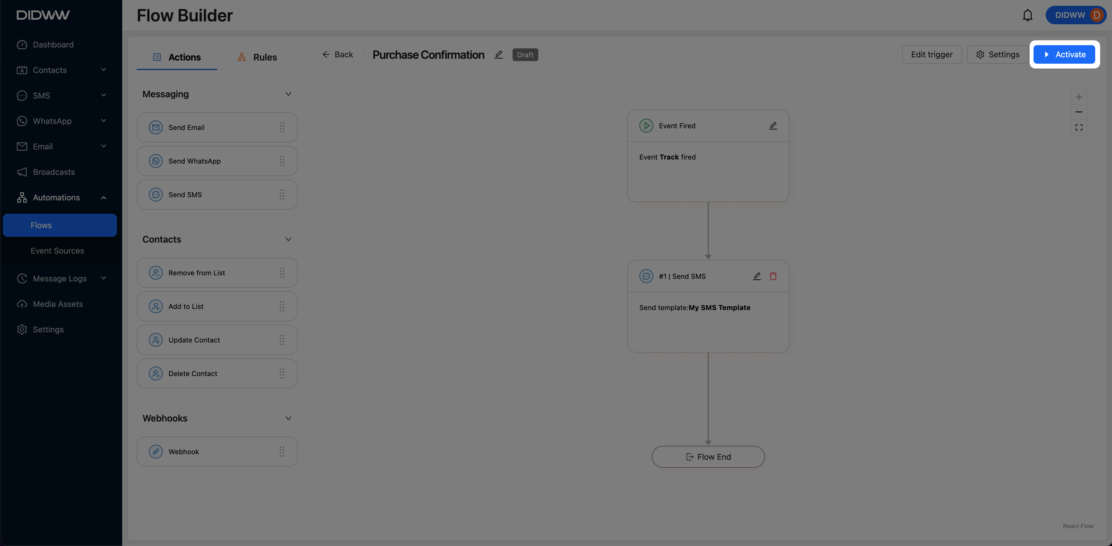 Once you understand the drag-and-drop process, review the available Actions and Rules described in the following documentation to configure your automation flow in more detail: