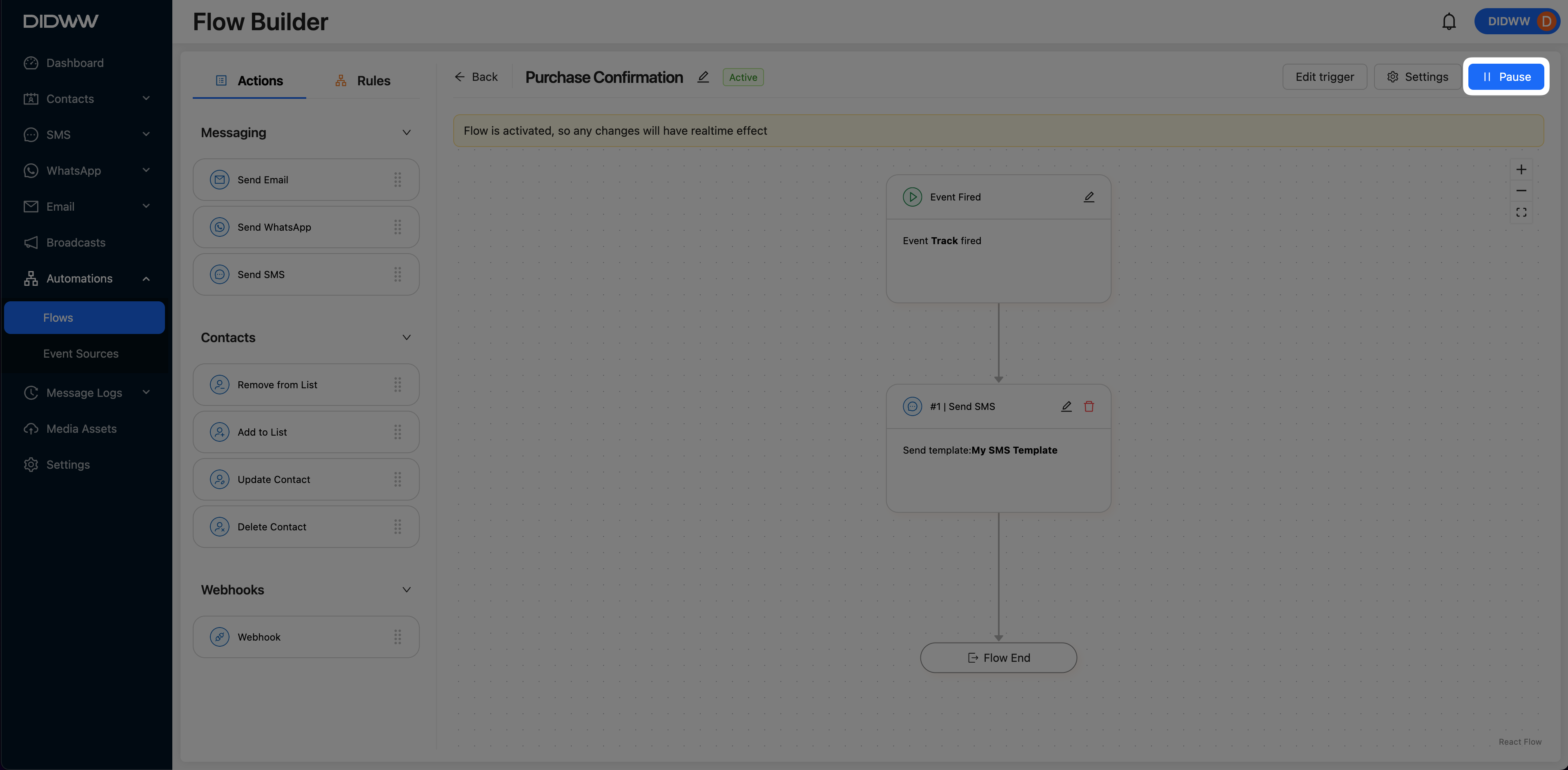After activation, you can pause the automation at any time if you need to make changes or temporarily stop the flow.