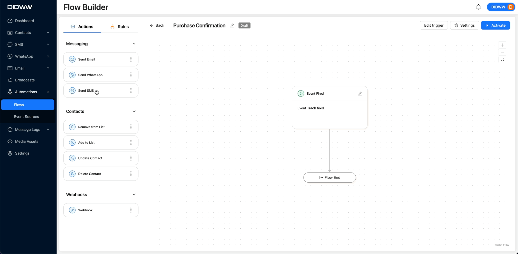 These flows respond to external signals—such as purchases, sign-ups, or app activity—and help you automate engagement with precision.