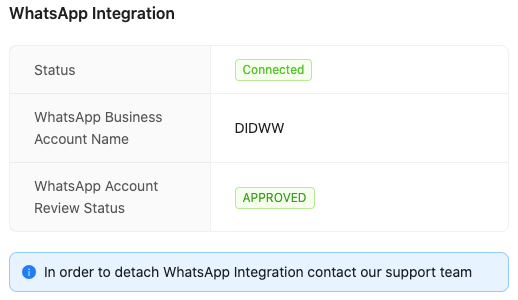Step 10: After the integration is complete, your WhatsApp business number will appear in the account settings.