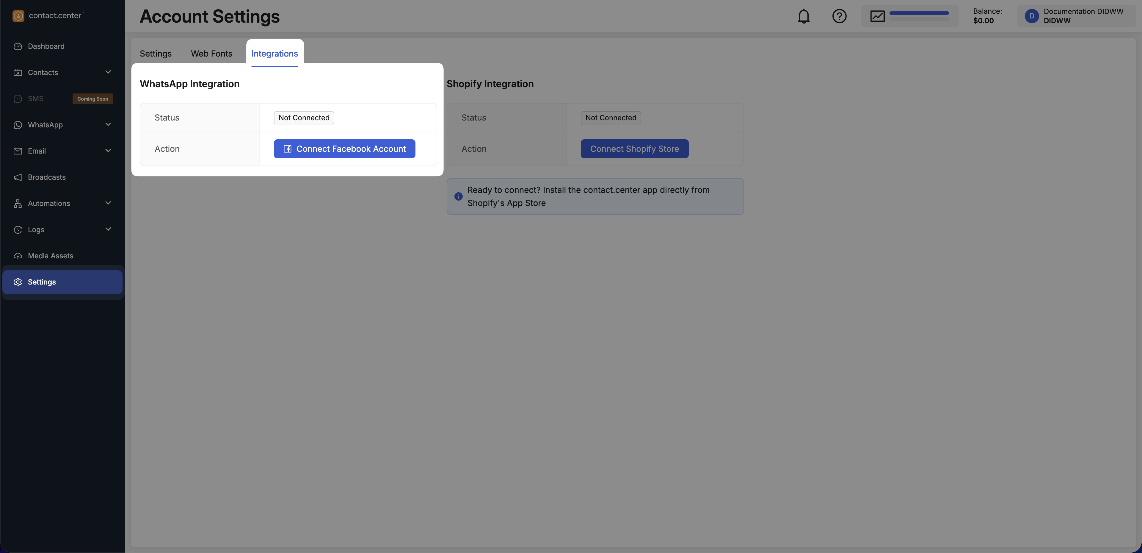For detailed steps on integrating WhatsApp Embedded Signup, refer to our guide or visit the Official Meta Website .